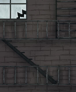 Opposite the entrance to the camp stands a rusty fire escape staircase where the leader of Fallen Claws gives their ceremonies, announcements and declarations.